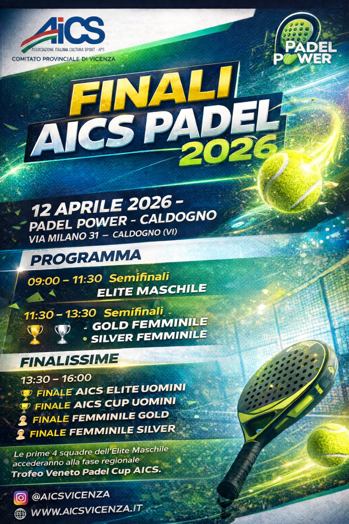 Il programma del 12 aprile prevede match intensi con le semifinali fino alle finalissime che decreteranno i campioni. L’invito è aperto a tutti: appassionati, curiosi e sostenitori. Le finali maschili di padel AICS a Vicenza si preannunciano come un evento da vivere fino all’ultimo punto presso il Padel Power di Caldogno.
